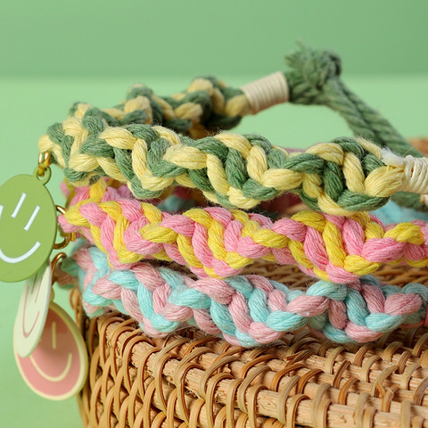 Có thể điều chỉnh Cat Dog Vòng cổ handmade dệt bông cổ áo với đầy màu sắc mặt dây chuyền mặt cười cho mùa xuân mùa hè Pet phụ kiện